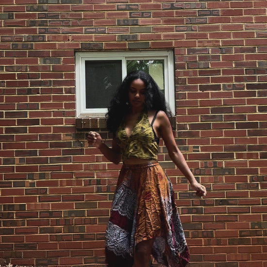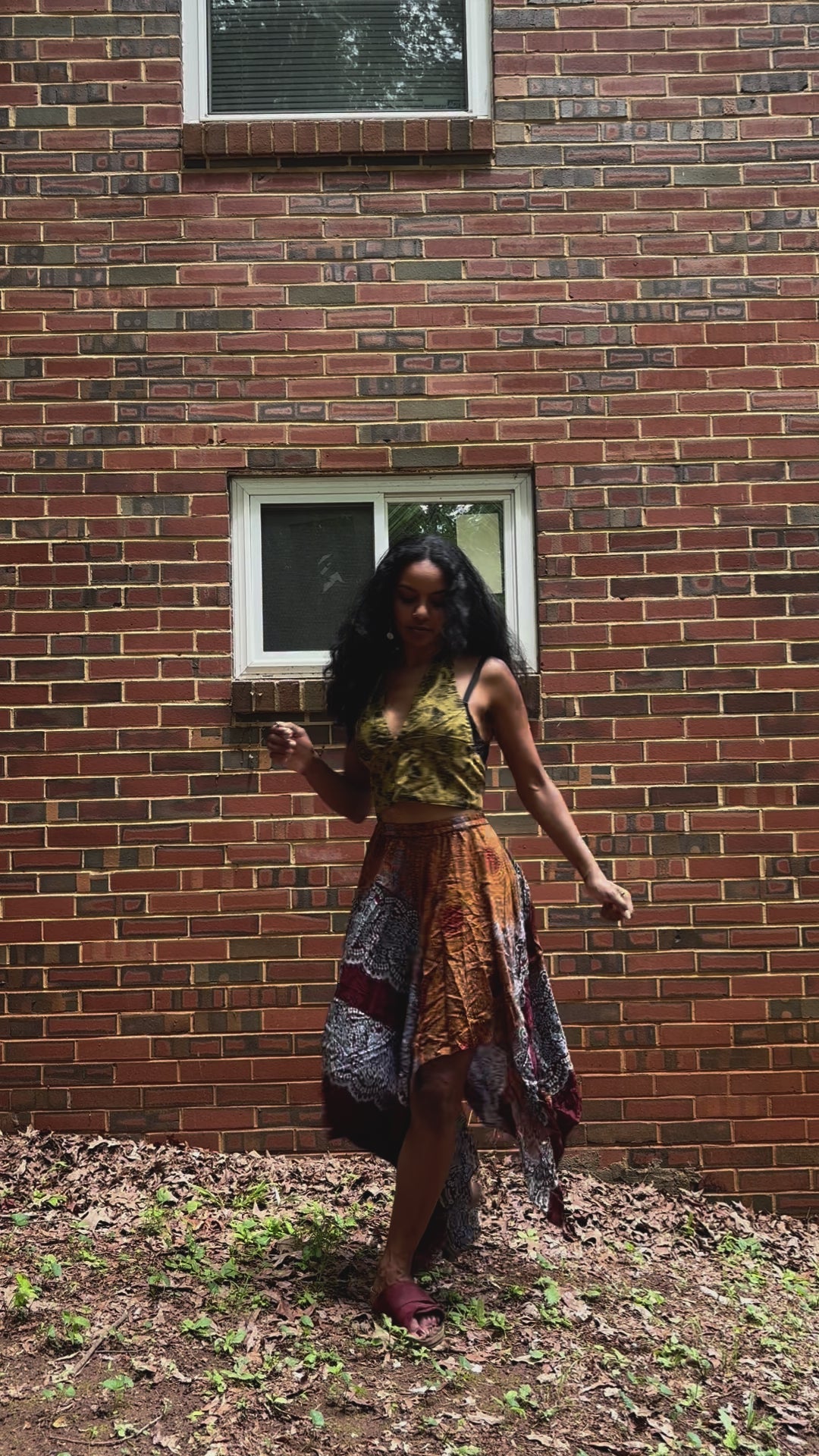 This handcrafted, mandala-printed skirt, with its flowy fairy-cut silhouette, dances with mystic charm for breezy, beautiful days.
