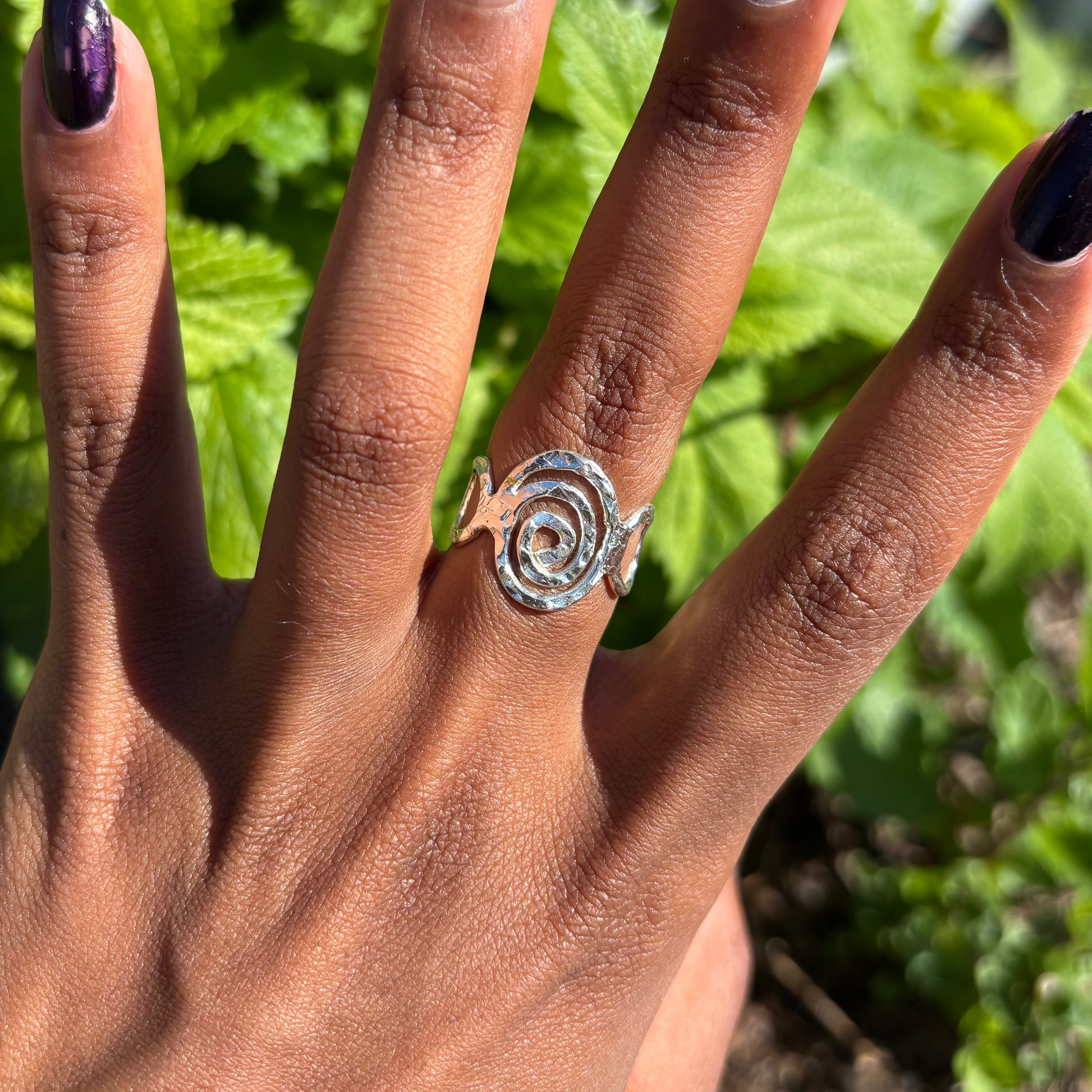 Wrap your finger in this adjustable ring, where spirals loop around in a playful pattern. Made in gold-plated or silver-plated brass, its flexible fit offers comfort and rustic charm. This handcrafted piece blends whimsy and elegance, ideal for dreamers who add beauty to every gesture.