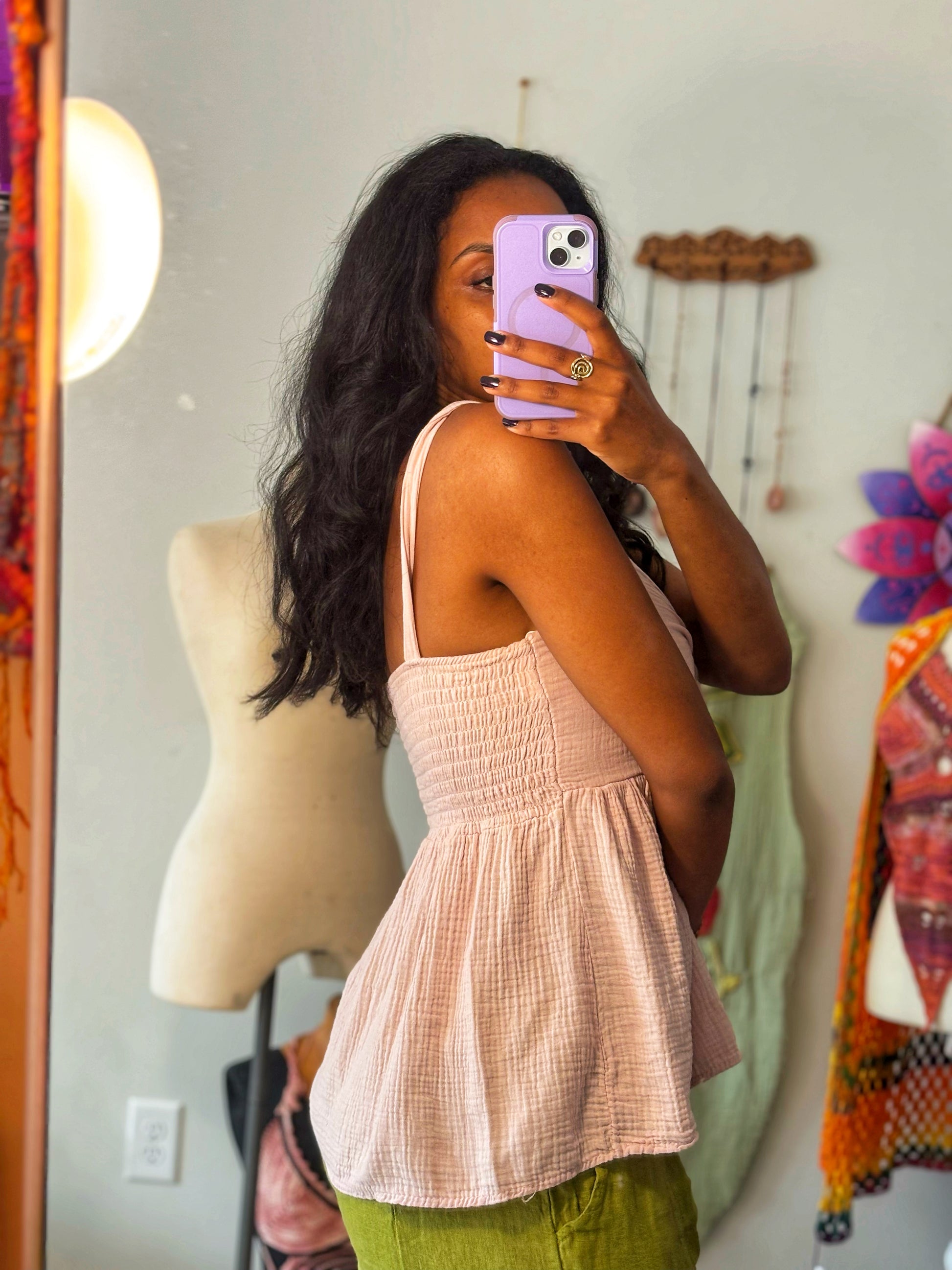 Light, airy, and easy to wear—this cotton gauze top is basically summer in a shirt. The delicate straps and front tie give it just the right amount of detail while keeping things effortlessly cool. Made from breathable and soft cotton gauze, it’s perfect for layering or wearing on its own when the sun’s out.